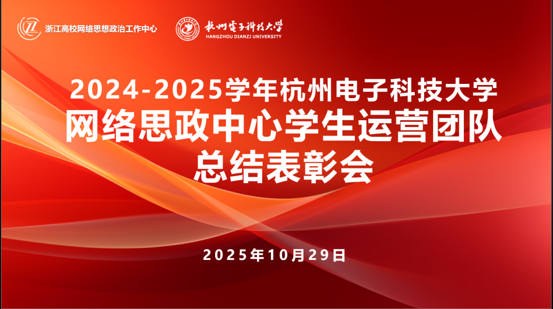 10月29日,2025 年浙江高校网络思政中心学生运营团队总结表彰大会在杭州电子科技大学第3教研楼101教室成功举行。本次会议旨在总结2024-2025学年浙江高校网络思政中心、浙江省易班发展中心的工作,表彰优秀学生运营团队。