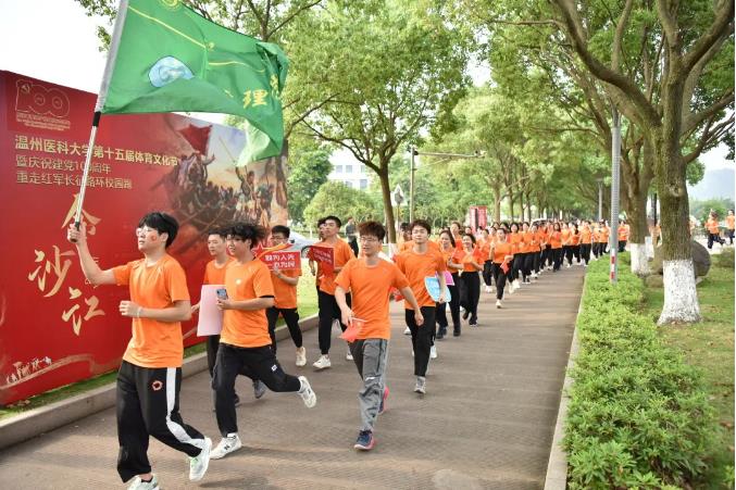 为庆祝建党100周年,持续深入开展党史学习教育,5月13日下午,温医大举办“重走红军长征路”环校园跑活动。校领导吕一军、程锦国、曹建明、李军红、朱雪波与来自各二级学院、体育社团的15支代表队共1300余名同学一起重走红军长征之路。