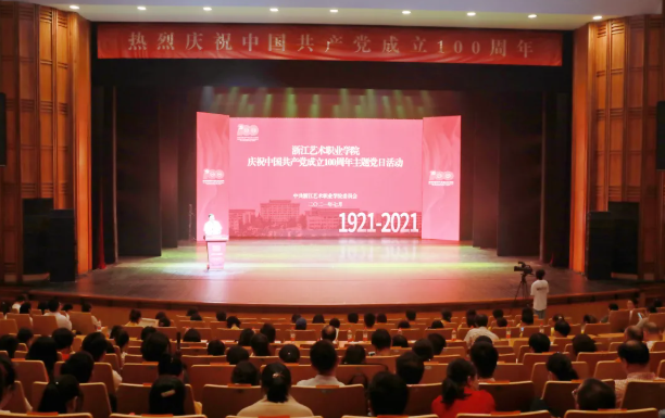 7月1日下午,随着雄壮的《义勇军进行曲》旋律响起,浙江艺术职业学院庆祝中国共产党成立100周年主题党日活动在浙江艺术实验剧场庄严启动。