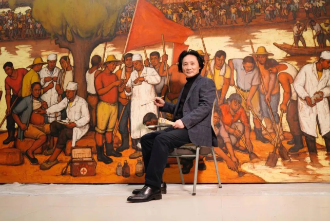 近日,我校美术学院陆琦教授创作的大型油画创作《送瘟神——消灭血吸虫病》在嘉兴市文化艺术中心——“红船颂”庆祝中国共产党成立100周年全国美术精品作品展览中展出。