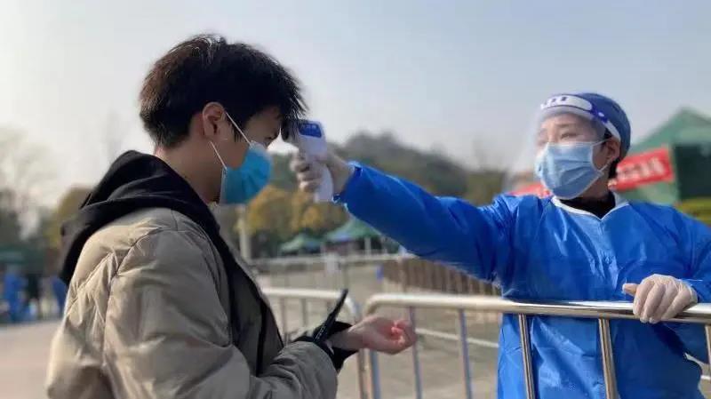 12月10日,浙江科技学院小和山校区开展大规模人群核酸筛查实战演练。根据统一指挥,参与演练的200余名师生在工作人员指引下,间隔1米安全距离,有序进入现场,分别进行体温测试、身份核验、核酸采样等流程。