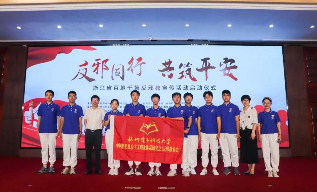 7月7日,由浙江省委宣传部、省委政法委、省公安厅、省教育厅、团省委、省科协、省反邪教协会等多家单位联合主办的“反邪同行共筑平安”——浙江省百地千场反邪教宣传活动在杭州正式启动。我校中国特色社会主义理论体系研究会(反邪教协会)师生代表参会并在启动仪式上表演了精彩的曲艺节目。