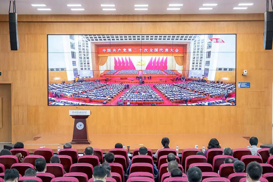 10月16日上午,宁波大学党政班子成员、院士代表、机关党委下属党支部全体支委、师生党员代表、群众代表和留学生代表等近500人满怀激动的心情,在真诚图书馆报告厅主会场集中收看了二十大开幕会。