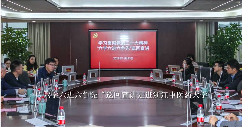 11月23日,学习贯彻党的二十大精神“六学六进六争先”巡回宣讲走进浙江中医药大学滨文校区。