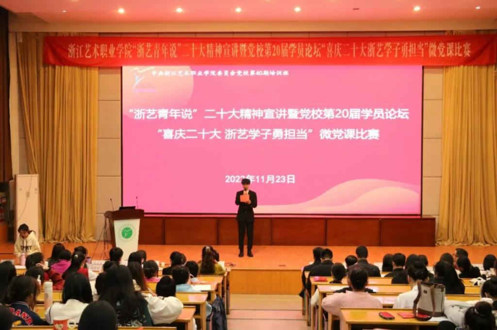 11月23日,由校党委宣传部、马克思主义学院、校团委联合主办的“浙艺青年说”党的二十大精神专题宣讲会在图信中心报告厅举行。党委书记薛亮,党委委员、副院长沈军甫,党委委员、宣传部(统战部)部长马向东,党委委员、组织部(人才办)部长刘杨,相关职能部门和各二级学院党总支负责人、党校培训班师生听取宣讲。