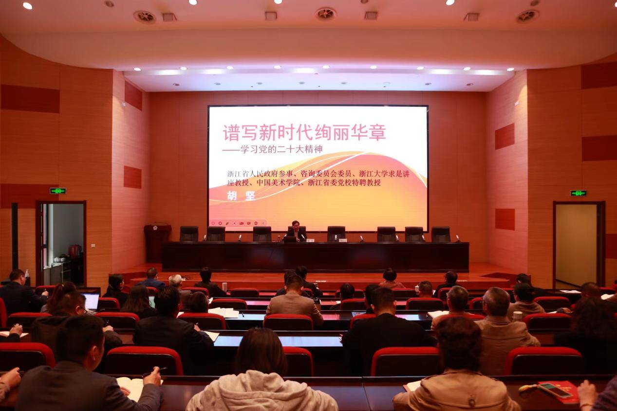 11月25日,湖州市委常委、安吉县委书记杨卫东前往安吉校区,宣讲党的二十大精神。校党委书记赵东福主持,校长陈建孟、副校长陈平出席。