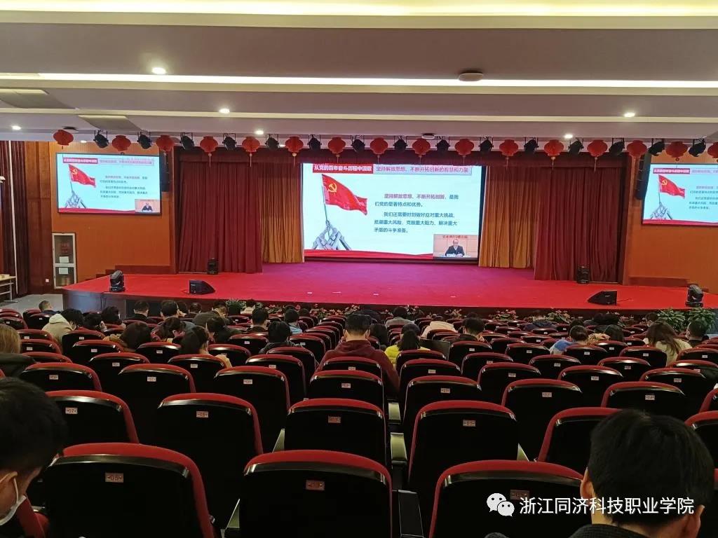 6月28日晚,浙江机电职业技术学院在滨江校区隆重举行“七一”表彰大会暨“红色传承 百年追光”文艺汇演,热烈庆祝中国共产党成立100周年,缅怀党的光辉历程,讴歌党的伟大成就,重温入党誓词,表彰先进典型。