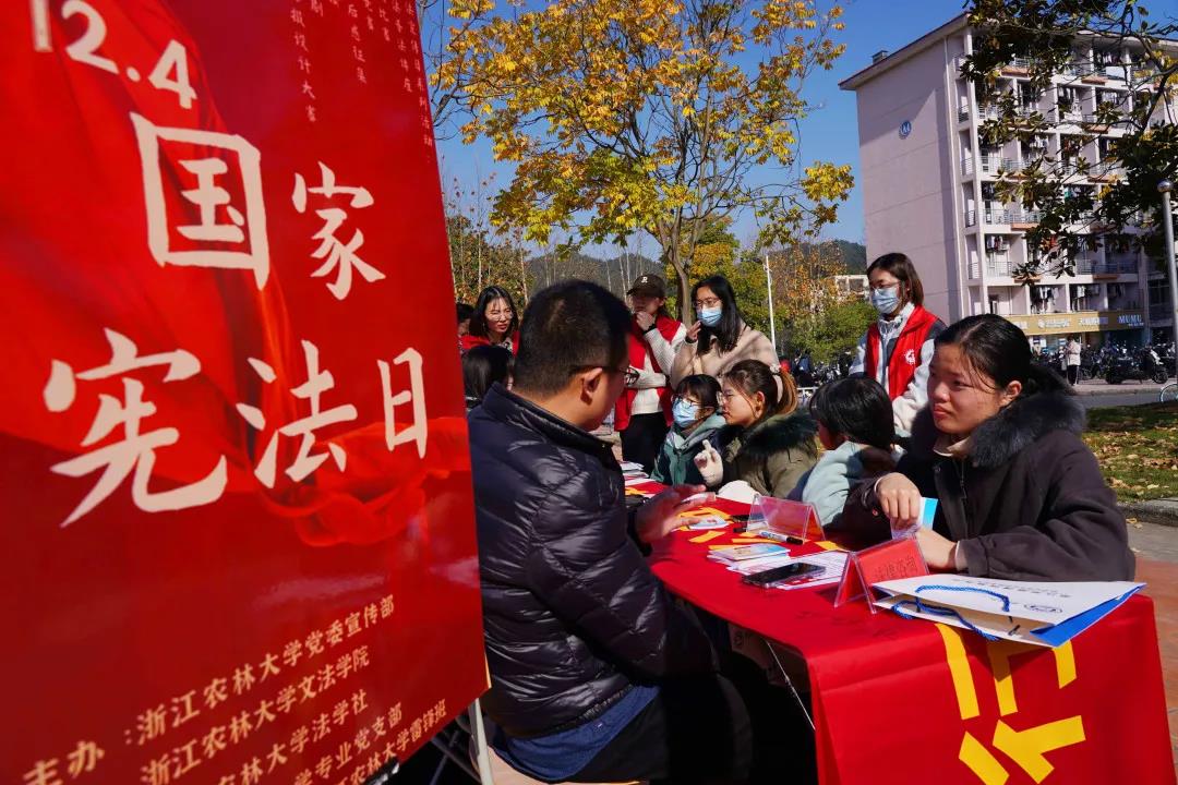 在国家宪法日到来之际,浙江农林大学开展了“青春心向党,宪法伴我行”暨第四个“宪法宣传日”主题教育系列活动。普法志愿者通过多种形式为师生们普及宪法知识,引导大家树立遵守宪法和法律法规的意识。进一步促进宪法精神融入人民群众、融入日常生活,进一步在全校营造弘扬宪法精神、维护宪法权威的浓厚氛围。