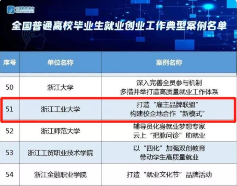 疫情之下,高校毕业生就业形势严峻,为解决就业难题,浙江工业大学创新性地打造“雇主品牌联盟”,构建校企地合作“新模式”,该案例成功入选教育部近日公布的100个典型案例名单。