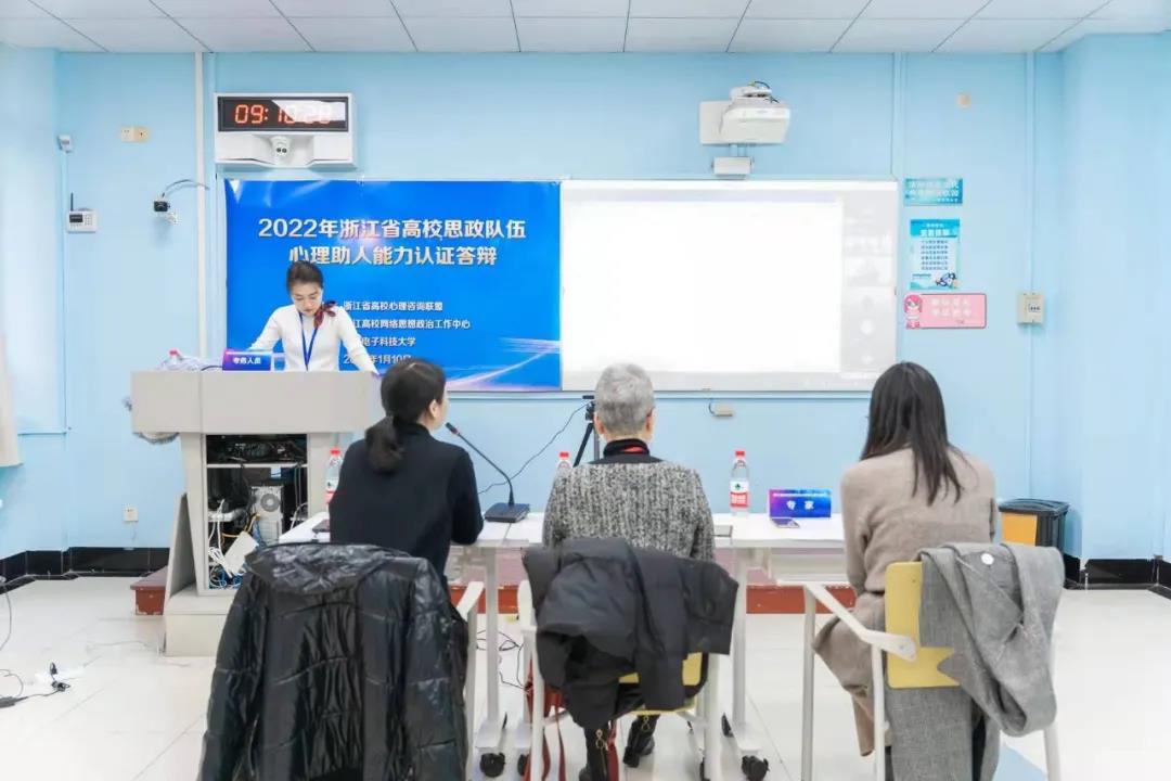 1月10日,2022年浙江省高校思政队伍心理助人能力认证答辩在杭州电子科技大学举行。答辩采用浙江高校网络思想政治工作中心最新研发的答辩系统,通过“线上答辩”和“模拟场景”创新了传统答辩流程。