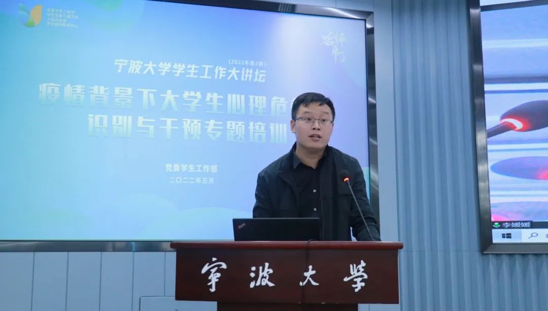 为加强高校对疫情背景下学生心理危机事件全面系统地预防和管理工作,有针对性地做好学生心理疏导和人文关怀,提升学生工作者心理健康教育工作胜任力,5月13日全天,宁波大学与宁波诺丁汉大学、宁波工程学院、浙江药科职业大学、宁波职业技术学院、浙江工商职业技术学院、宁波幼儿师范高等专科学校“七校共听一节课”,联合举办《疫情背景下心理危机识别与干预》专题培训。