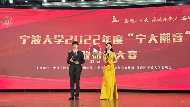 日前,宁波大学“喜迎二十大,永远跟党走,奋进新征程”2022年“宁大潮音”思政微课大赛决赛暨“有思说”青年宣讲团成立仪式在真诚报告厅举行。