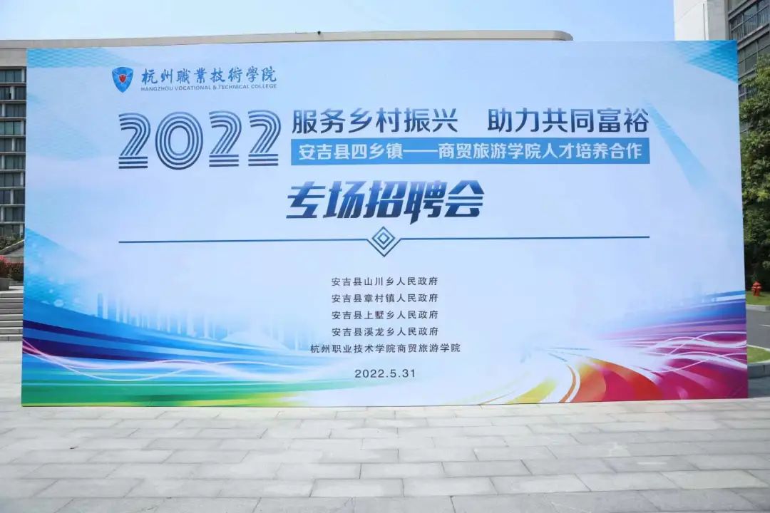 5月31日下午的杭职院善湖旁,一派春夏交接的景象,虽然天气有些许闷热但是在湖边的雨棚下还是人头攒动,十分热闹。这是商贸旅游学院与安吉县四个乡镇共同举办的校地人才培养合作洽谈与专场招聘会正在举行。