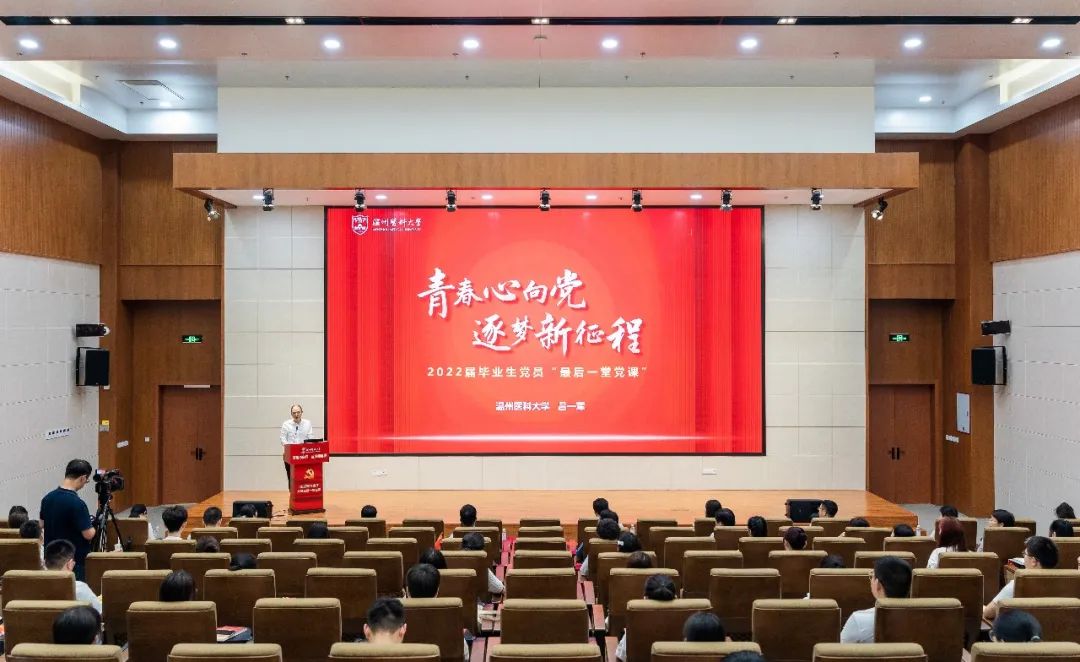 青春奋进正当时,不负韶华勇担当。6月23日下午,温州医科大学2022届毕业生党员“最后一堂党课”在茶山校区生物医药科研楼二楼报告厅举行,校党委书记吕一军以“青春心向党 逐梦新征程”为题,为即将告别母校,踏上新的人生旅程的毕业生党员上党课,让青年党员再一次感受信仰的力量。有关职能部门负责人、各学院党委书记及100余名毕业生党员参加了党课学习。