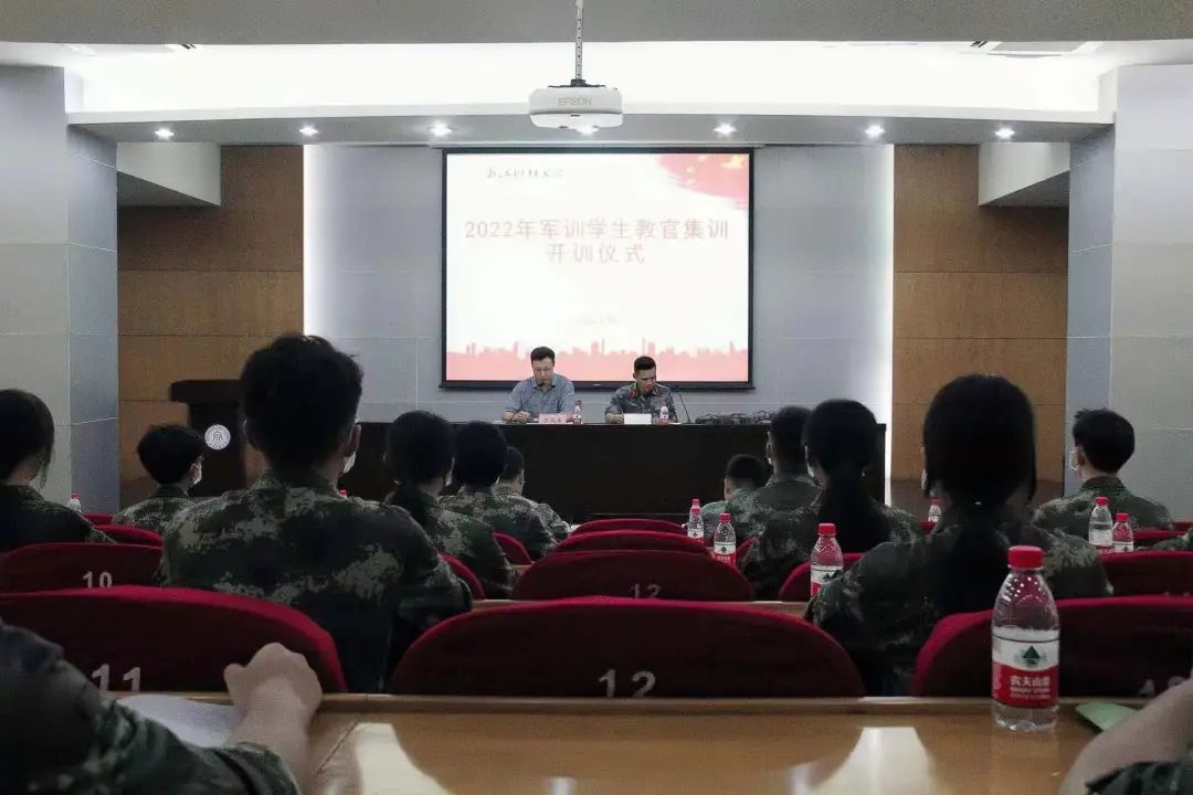 8月23日上午,浙江财经大学2022年军训学生教官集训开训仪式在行政楼报告厅举行。校党委人武部副部长汪风易、钱塘区人武部承训教官张伯池、钟毅、徐洋洋、吴锋桥,以及全体参训学生教官参加开训仪式。