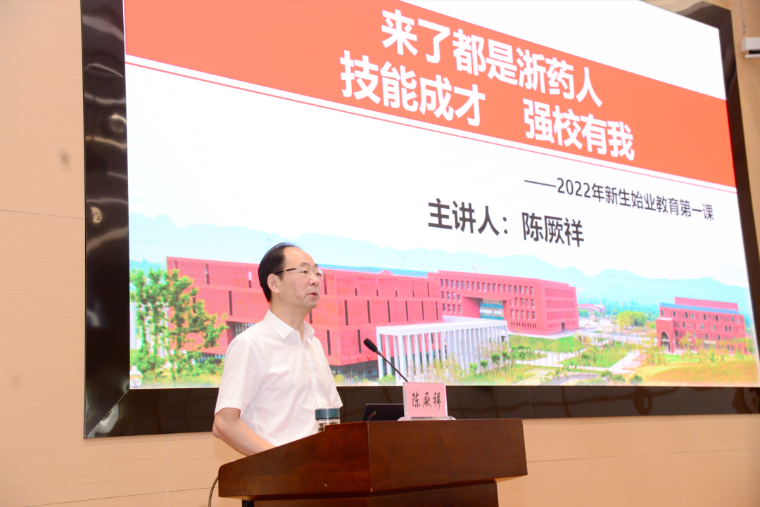 “‘四时俱可喜,最好新秋时’今天,我们在浙江药科职业大学相遇,从此,我们就拥有了一个共同的名字——浙药人!”9月7日上午,校党委书记陈厥祥以《来了都是浙药人 技能成才 强校有我》为题,通过线上线下结合的方式为全校4000余名新生讲授始业教育“思政第一课”,这也是陈厥祥书记坚持为新生上“思政第一课”的第8年,旨在引导青年学生树立远大理想、掌握过硬本领、促进全面成长。本次“第一课”主会场设在奉化校区111会议...