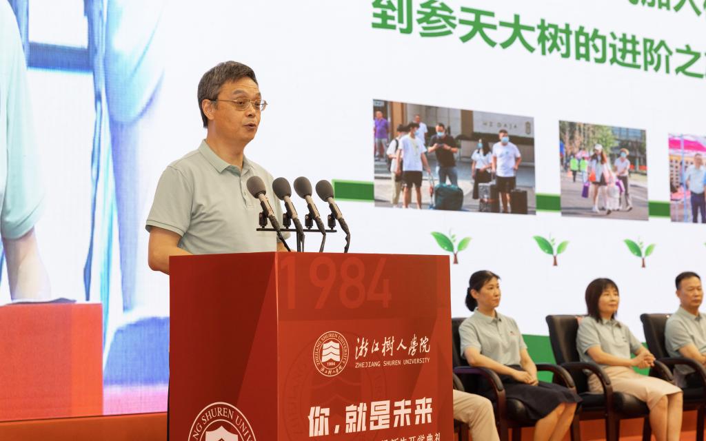 首先请允许我代表近2万名在校师生欢迎来自15个省的4842名新同学!今天你们穿上“新苗”服,正式加入树人大家庭,开启从小树苗到参天大树的成长成材之旅。