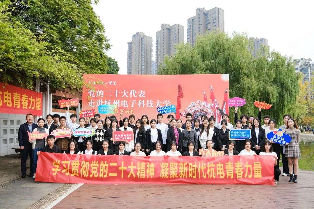 11月3日下午,杭州电子科技大学下沙校区月雅湖畔微风徐徐,一场别开生面的宣讲在此举行。学校“00后talker”宣讲团、星青年宣讲团的同学们在听完党的二十大代表、“中国戏剧梅花奖”获得者、中宣部宣传思想文化青年英才、浙江婺剧艺术研究院演员杨霞云宣讲党的二十大精神后,满脸兴奋地说到。