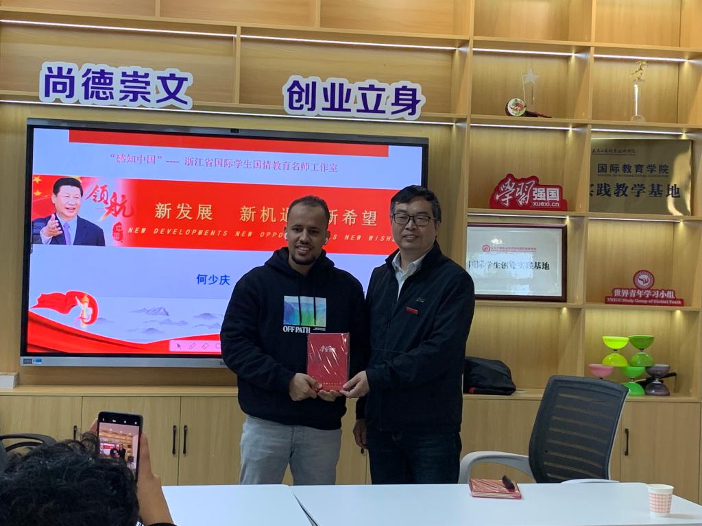 11月4日上午,义乌工商职业技术学院“感知中国”名师工作室负责人何少庆教授为学校国际学生和世界青年学习小组成员宣讲党的二十大精神。