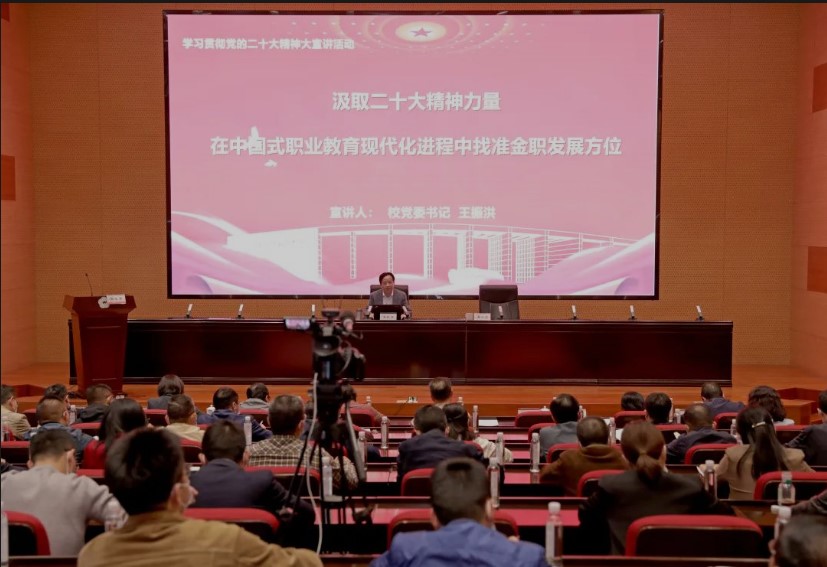 11月1日上午,金华职业技术学院举办党的二十大精神宣讲会,党委书记王振洪以《汲取二十大精神力量,在中国式职业教育现代化进程中找准金职发展方位》为题,作党的二十大精神宣讲。