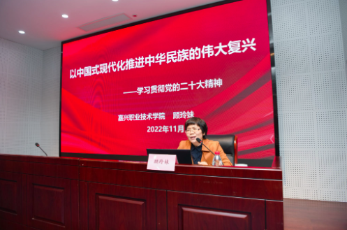 11月23日下午,嘉职院马克思主义学院宣讲团走进平湖技师学院,宣讲党的二十大精神。马克思主义学院院长、嘉兴市红船精神教育实践中心主任顾玲妹教授为该校两千多名师生作首场报告。