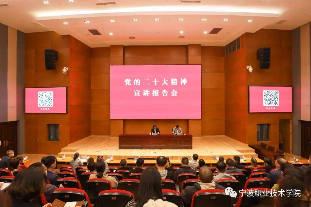 11月15日,市委常委、区委书记、宁波经济技术开发区党工委书记潘银浩专程来到我校,宣讲党的二十大精神。我校党委书记张慧波主持宣讲会。