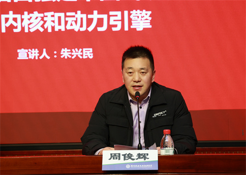 11月30日晚,东阳市融媒体中心党委副书记、机关党委书记朱兴民来我校进行党的二十大精神宣讲。党委副书记周俊辉,党委委员、宣传部部长林春蕾以及各学院辅导员、学生代表参加,讲座由周俊辉主持。