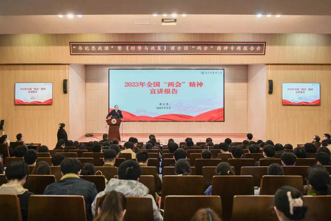 3月22日,学校举办“书记思政课”暨《形势与政策》课全国“两会”精神专题报告会,十四届全国人大代表、校党委书记黄文秀教授作传达报告。