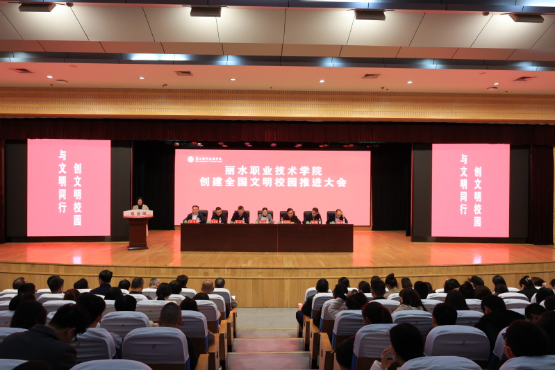 为深入贯彻落实党的二十大精神,持续深化新时代文明校园创建工作,助力丽水争创全国文明典范城市,3月27日下午,丽水职业技术学院全国文明校园创建推进大会在学校第一报告厅召开。