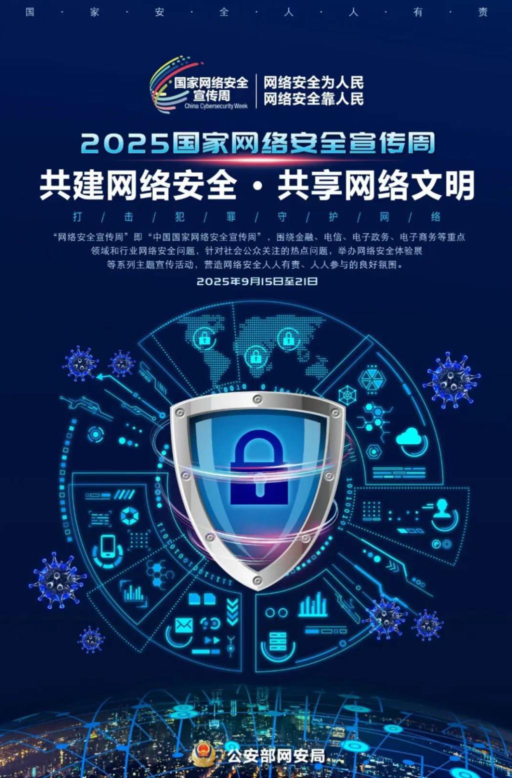 9月15–21日2025国家网络安全宣传周网络安全为人民,网络安全靠人民通过一组海报一起学习网络安全知识筑牢网络安全防线