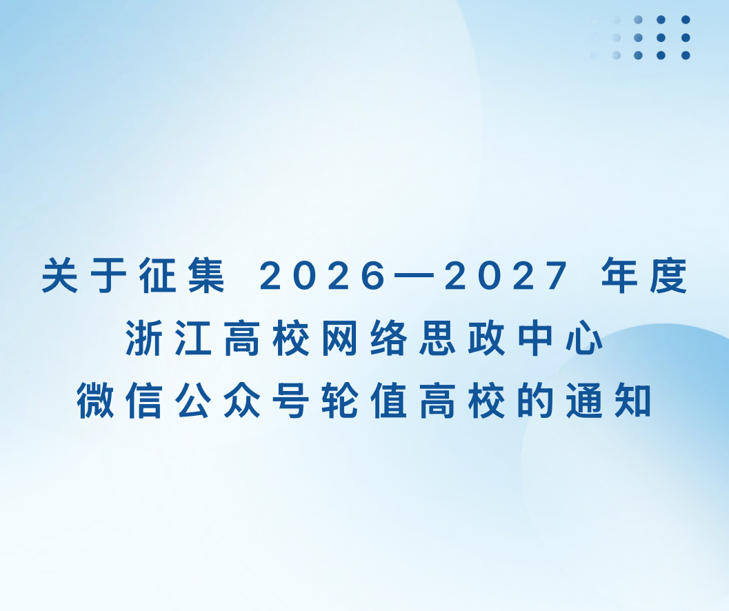 各相关高等学校:为贯彻落实习近平总书记关于宣传思想文化工作的重要指示,深化实施“时代新人铸魂工程”,持续擦亮“新时代真理的味道”大思政品牌,推动全省高校网络思政工作守正创新,构建协同育人新格局,现面向全省高校征集2026—2027年度浙江高校网络思政中心微信公众号轮值高校。