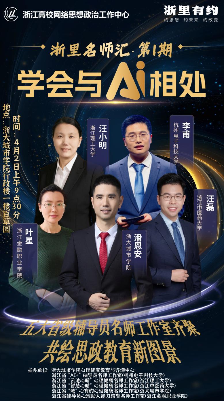 为提升数智心育水平,践行“健康第一”理念,助力大思政工作体系建设,4月2日上午,第一期浙里名师汇“AIGC时代,学会与AI相处”辅导员名师工作室交流会在浙大城市学院百草园举行。