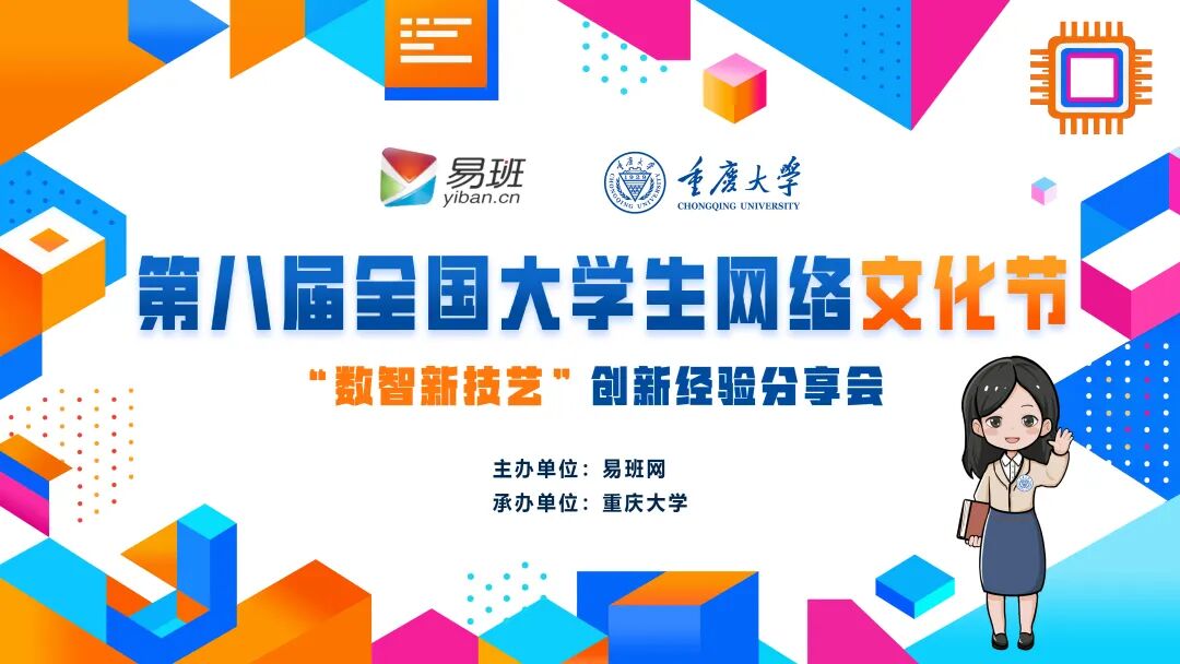 第八届全国大学生网络文化节 “数智新技艺”创新经验分享会共分为四场。本场经验分享会由易班网主办,重庆大学承办。