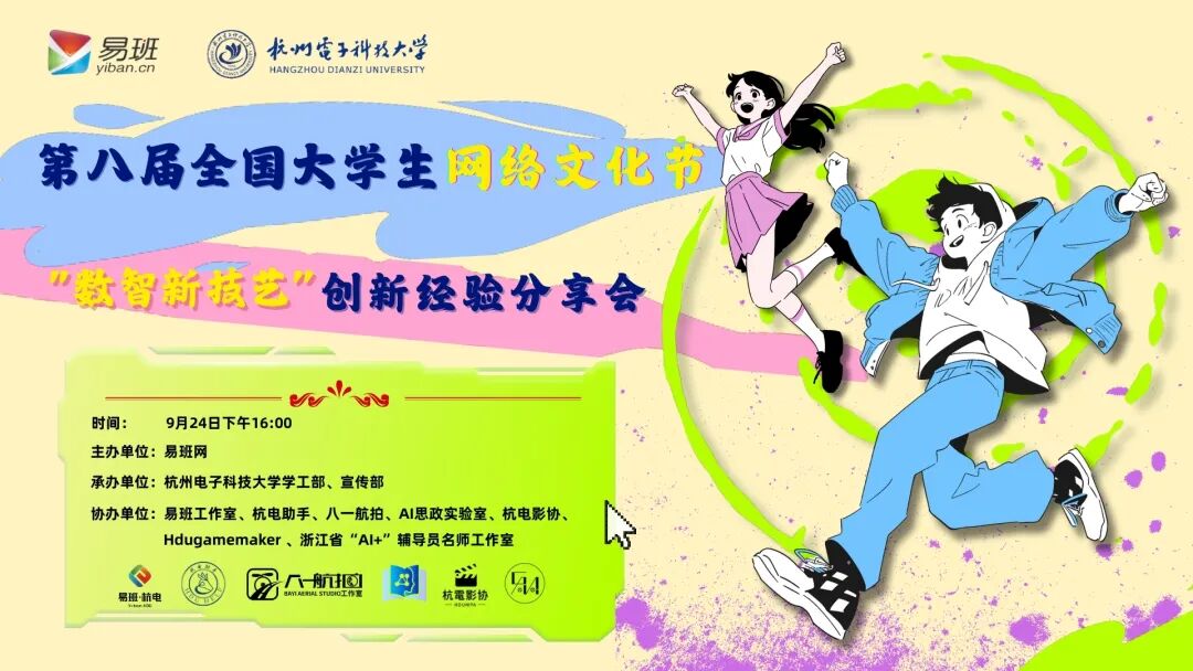 9月24日下午16:00,第八届全国大学生网络文化节 “数智新技艺”创新经验分享会第二场将由杭州电子科技大学接力开讲啦!本场经验分享会不仅有数智新技艺入门“秘籍”,还有超实用的学生作品创作经验、学...