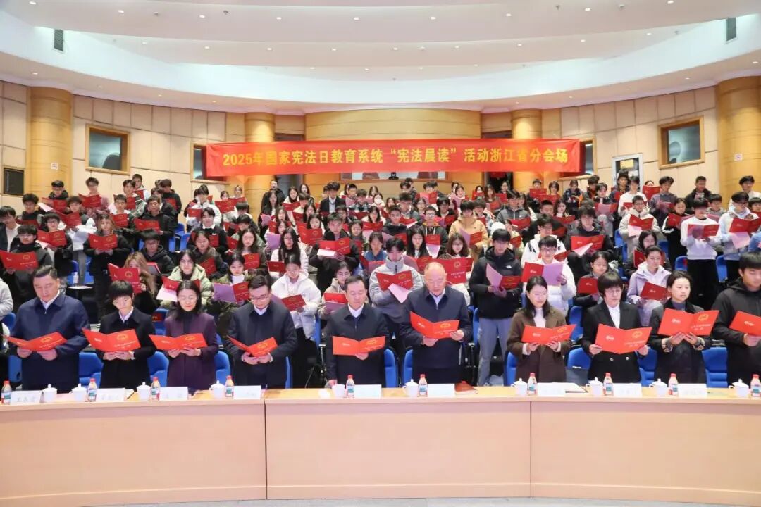 2025年12月4日是第十二个“国家宪法日”。今天上午,全国教育系统“宪法晨读”浙江省分会场活动在浙江工业大学举行,通过网络直播连线教育部北京主会场同步参与。