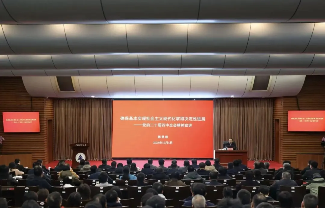 12月4日,省委常委、组织部长杨荫凯到所联系的中国计量大学,宣讲党的二十届四中全会精神及省委十五届八次全会精神。