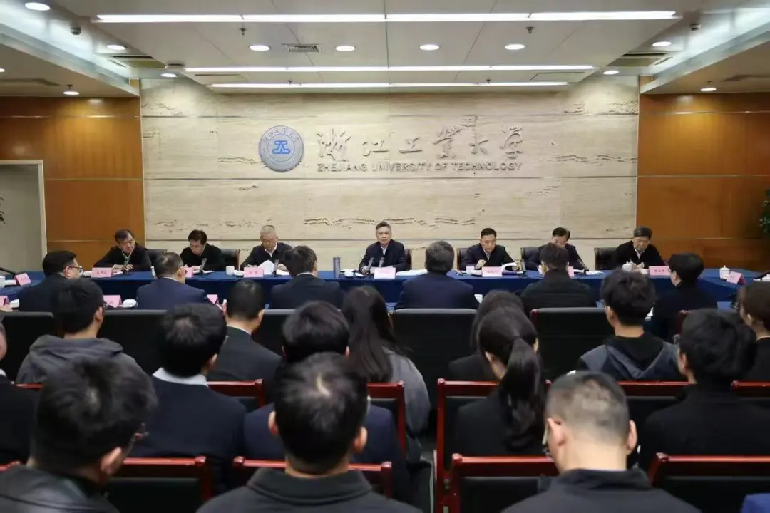 12月4日,省委常委、组织部长杨荫凯到所联系的中国计量大学,宣讲党的二十届四中全会精神及省委十五届八次全会精神。